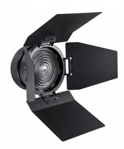 Le FL-11 est lentille de Fresnel en verre dans une bague réglable pour ajuster la focalisation de la lumière. Cela permet de régler l'angle du faisceau du spot 10° à un angle plus ouvert de 45°. Fournis avec des volets coupe-flux en métal et une monture type S Bowens.