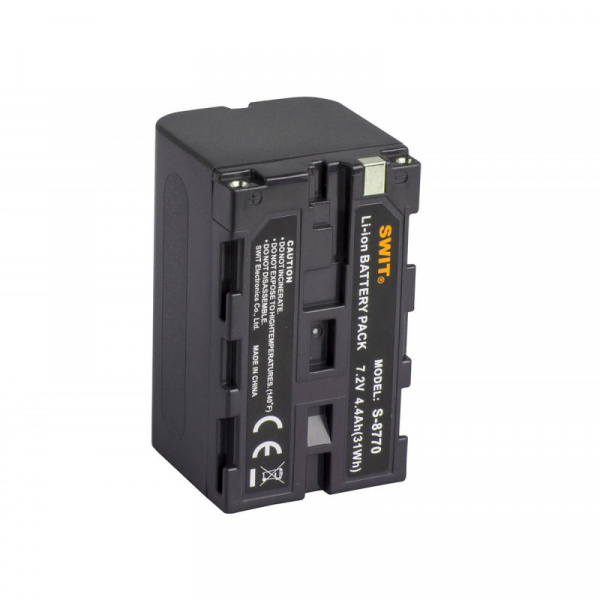 Avec une tension nominale de 7,2V, le S-8770 a une capacité de 31Wh / 4,4Ah, et peut fonctionner environ 3,5 heures sur le caméscope SONY HVR-Z1 lorsque l'écran LCD est allumé.