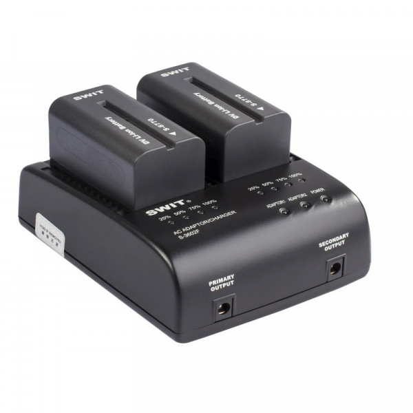 Le S-8770 peut être chargé avec le chargeur SWIT à deux canaux S-3602F ou le chargeur à quatre canaux LC-D421. Il faut environ 2 heures et 50 minutes pour passer d'une batterie vide à 100%.