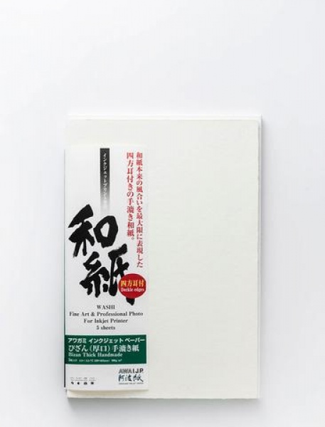 Bizan épais naturel 300 g/m² A3 5f: Le papier BIZAN est fabriqué entièrement à la main avec un procédé traditionnel. Ce papier luxueux a une épaisseur généreuse et ses quatre bords sont frangés. Grâce à sa rigidité, les images imprimées sur ce papier peuvent être exposées sans encadrement.
