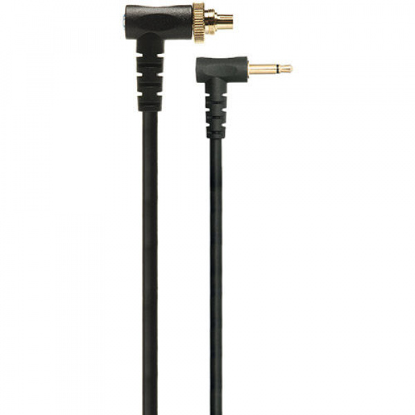 Câble synchro court noir prise PC (boîtier photo, prise synchro flash cobra, etc) vers mono Jack Ø3,5 mm (Pocket Wizard, flash studio, etc).