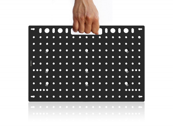 La Digiplate pro est l'accessoire de base de toute la famille de produit Digisytem. Le Digiplate pro est un support rigide en aluminium, garni de 161 trous avec un filtage 3/8 -16 permettant de fixer un ordinateur portable. Grâce à cela les combinaisons d'accroches sont presque infinies.