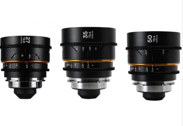 Le lot comprend des objectifs anamorphiques compacts Laowa Nanomorph de 27, 35 et 50 mm qui présentent un rapport de compression anamorphique de 1,5x, des reflets argentés, des marquages en mètres et en pieds, des engrenages ciné MOD de 0,8 et une monture Sony E.