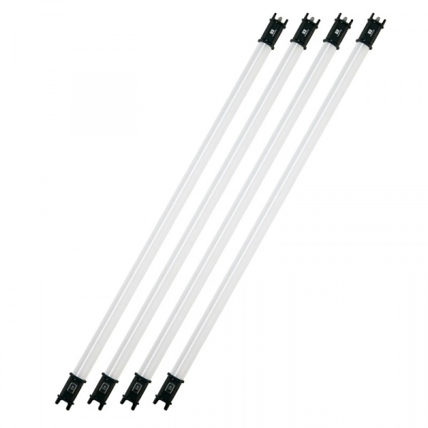 L'ensemble se compose de 4 tubes à LED d'une longueur de 117 cm pour un diamètre de 4,8 cm ainsi que divers accessoires. L'ensemble peut être rangé en toute sécurité dans le sac de transport rembourré fourni.