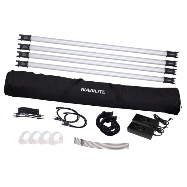 Kiit Nanlite PavoTube 30C 32W (RGBWW LED Tube) avec batterie interne. Un kit d'éclairage portable et étonnamment polyvalent, doté de charge USB-C, d'une puissance maximale de 2850 lumens par tube (les 4 tubes du kit fournissent ensemble 2369Lux @ 1m à 5600K), d'un IRC de 98 et d'un TLCI de 95, d'une température de couleur réglable de 6500-2700K avec un spectre complet RVB et des effets lumineux spéciaux préprogrammés.