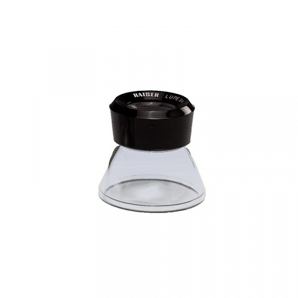 Loupe basique de laboratoire, grossissement 8X, avec jupe transparente.