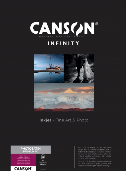 Canson® Infinity PhotoSatin Premium RC est constitué d’une base sans acide en fibres alpha-celluloses enduite d’une couche de polyéthylène puis d’une couche réceptrice microporeuse.