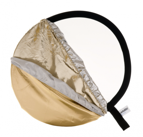 Glisser simplement la housse réversible élastique Doré/Blanc ou Sunfire/Argent pour recouvrir le réflecteur et changer de surface en un instant.