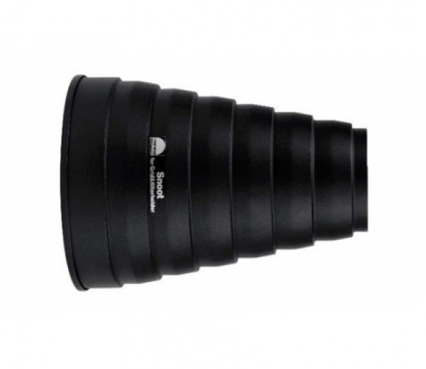 Le Snoot est un modeleur utilisé avec un Zoom Reflector pour réduire considérablement le faisceau de lumière. Le résultat est une lumière intense et directe, avec pratiquement aucune lumière périphérique. Pour l’installer, il vous faut un Grid and Filter Holder qui est vendu séparément.