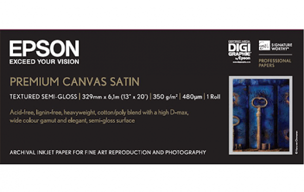 Que ce soit pour des portraits photo ou pour une réalisation artistique, le papier Premium Canvas Satin saura satisfaire les professionnels les plus exigeants, en leur offrant une qualité d'image exceptionnelle. Mélange de polyester et de coton doté d'une texture unique en son genre qui rappelle les travaux d'artistes professionnels sur une surface brillante.